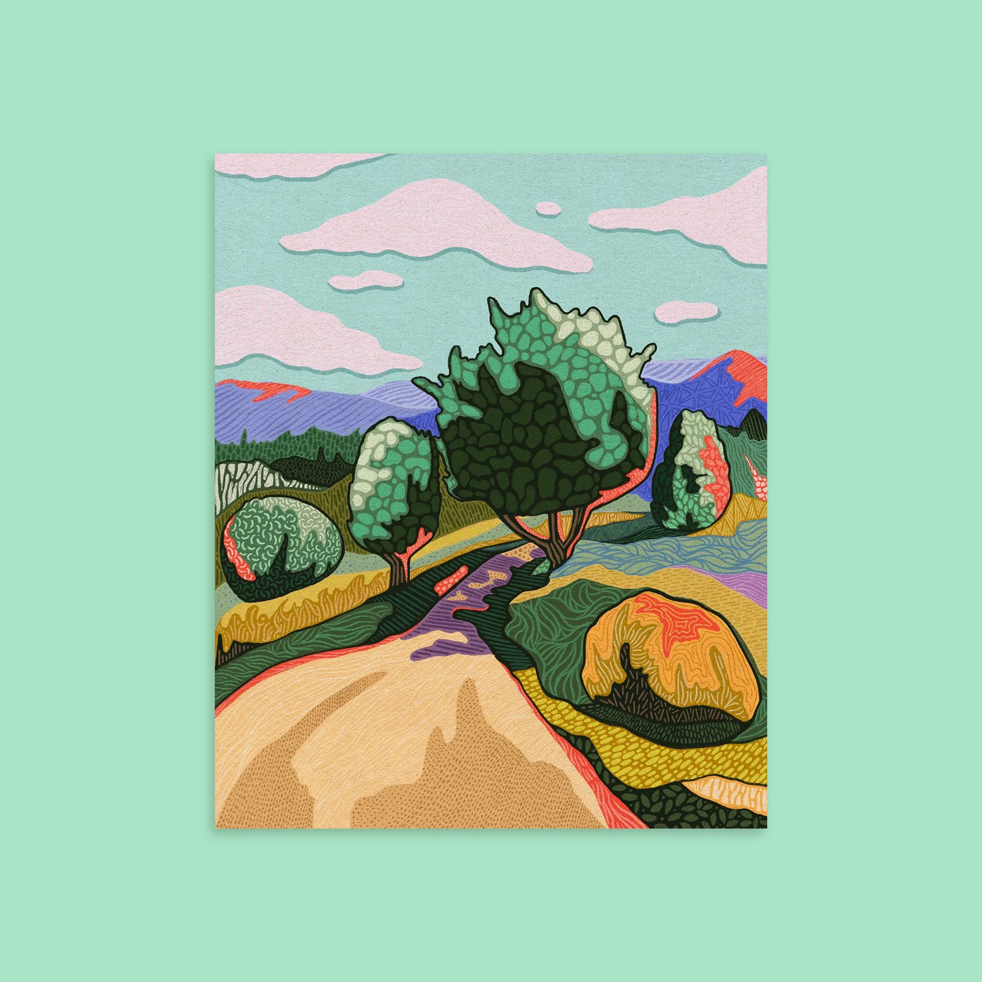 Material: Heavy cardstock with matte finish, printed in studio, packaged in a clear sleeve